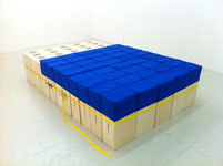 An 'apple box' is a piece of equipment most often found on film sets and used as a riser to bring props in and out of a camera's frame. In this show, sixty of these boxes have been transformed into a daybed on which visitors to the gallery are invited to sit or lie.