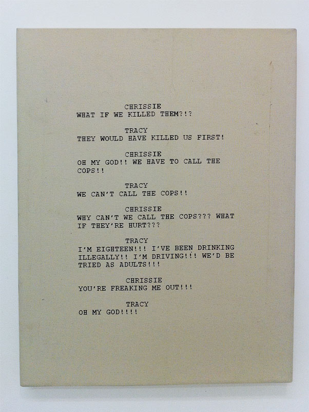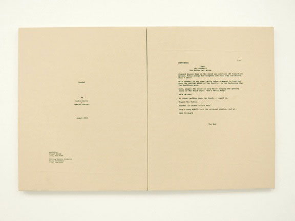 Also, on the walls of the exhibition are several new pieces that, like the Daybed, recontextualize the visual language of contemporary film production.