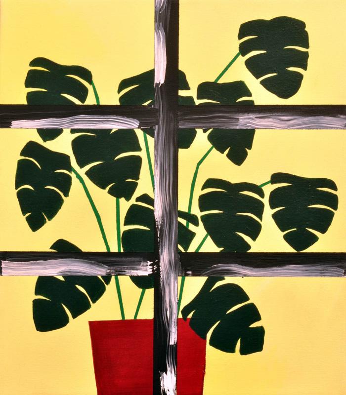 My works are contemporary still life paintings depicting accumulations of domestic decorations such as plants, abstract sculptures and other objects. These objects are broken down into basic shapes, patterns and colors, which are set against simplified and subtle backdrops. I layer the paint using a variety of techniques and mediums creating interesting contrasts in color and texture throughout the paintings. The differing color compositions are capable of triggering different emotional reactions from happy and content to sad and lonely. These paintings are compacted glimpses into larger living spaces.